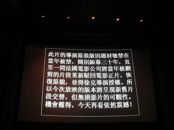 最終,在幾番交涉之下。制片方接受「香港電檢處」的意見,對片中黑暗、壓抑的片段進行了大幅度的刪減,之后得以上映。而原版中灰暗、壓抑的結尾也被刪除,并重新補拍。
